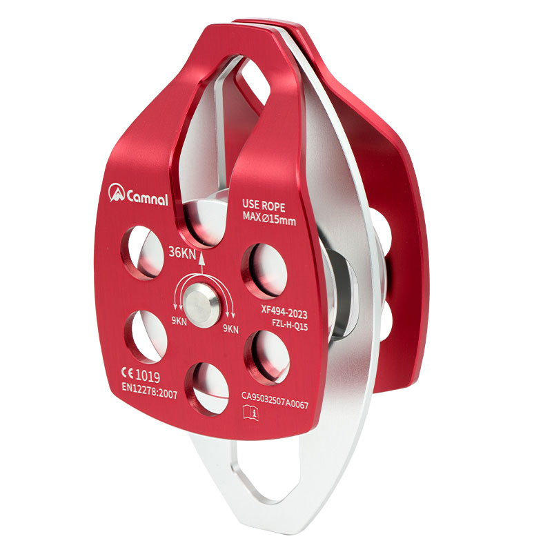 ·滑轮锁扣配合抓绳器时,可方便地安装绳索拖拉系统·凹形设计的滑轮可以更好的贴合绳索,表面抛光,内部集成滚珠轴承,使用更加平稳