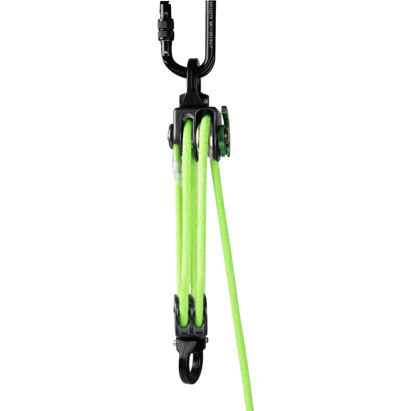 绳索救援系统用高效过节大滑轮宽大的绳槽可以通过绳结大轮径,并排使用密封的滚珠轴承,可获得更佳的效率可用挂点5个,可用做分力板滑轮上配备可拆插销,可固定轮轴,可使滑轮用作锚点只能用于编织绳,高效带轴承