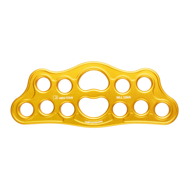 用于增加挂接点位,常用于锚点假设、担架连接等.8个孔位,可实现丰富的挂接方案7小孔,孔径19mm;1大孔,孔径40x25mm,方便主锁受力前的调节·阳极氧化工艺着色饱满,氧化保护膜更耐磨对铝材密封性更好加厚合金材质,