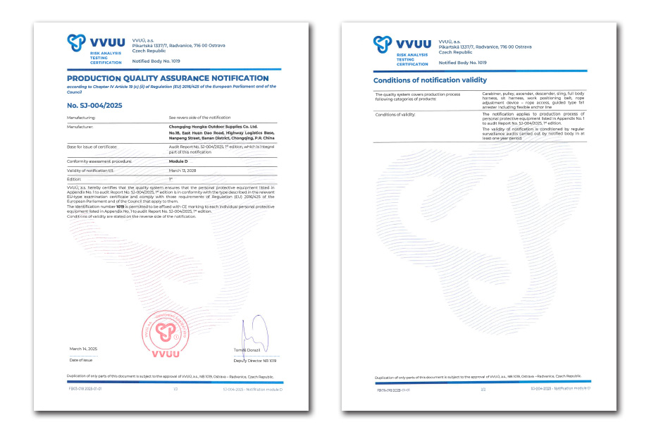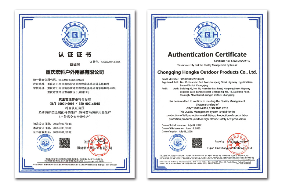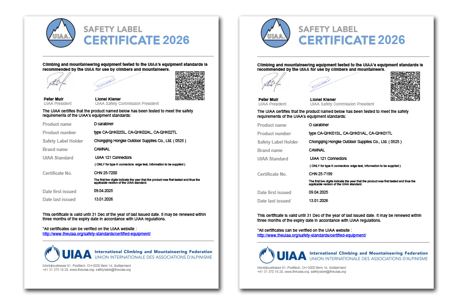 自创立之初,我们便全心投入研发,坚守 “安全第一” 的铁律。历经多年深耕,我们的产品线已覆盖工业、户外与救援领域,“Camnal”已成为质量与安全的代名词。这背后是我们对国际标准的严格遵循,我们不仅荣获了ISO9001质量管理体系认证,更通过了严苛的CE模块D驻厂认证,为产品进入全球市场提供了坚实背书。