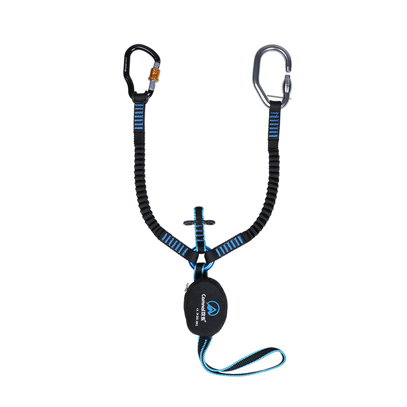 非常轻巧紧凑的挂绳:-仅365克-超紧凑能量吸收器减少体积以便移动-长伸展能力和弹性臂,便于进阶并适应不同用户身高-短臂可以轻松放在梯级上(不含登山扣)符合人体工学的VERTIGO线锁扣具提供优异的抓握力:-VE